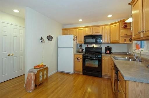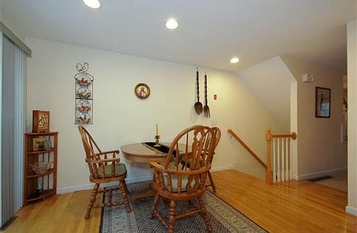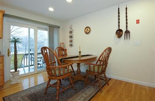WOW! Joyful and bright this large 2 BR unit shows a pride in ownership. Kitchen opens to dining area with a slider onto the deck! The warm and inviting living room is filled with sunlight. Spacious MBR has a walk-in closet. Beautiful entry foyer and walk-out basement, plenty of storage. Hot Air Gas Heat and Central AC. Small well managed community close to restaurants, park, pond and T-station. Superb value!