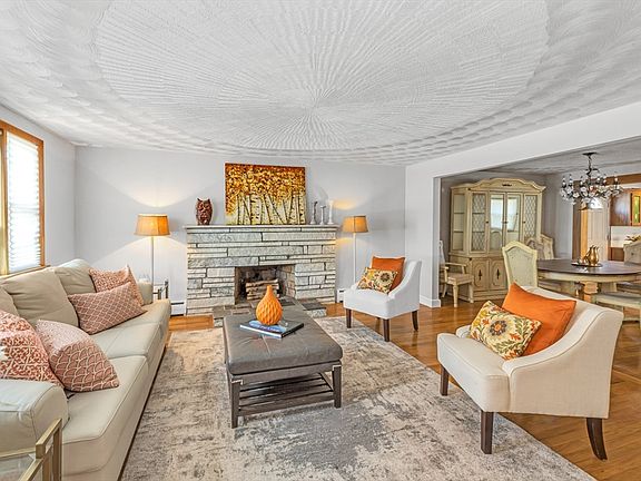 Introducing 35 Freeman Ave. This custom built mid century, expanded brick ranch was meticulously maintained by it's original owner. The home features a freshly painted interior, an open floor design with original oak flooring throughout, a massive formal living room with a wood burning, locally sourced stone facade FP which flows into the dedicated dining room. The eat- in kitchen boasts stylish tile flooring, solid wood construction cabinets, newer appliances opens into the newly expansive family room with cabinetry for storage, new berber carpet and access to the yard. The 3 bedrooms all offer great closet space, wood flooring complimented by a full bath with tub and tile surround. The basement follows the same footprint of the main floor with 8ft ceiling height perfect for expansion as an ADU or additional living space. It has a full walkout, direct access to the slate paved patio and landscaped yard with entrance to the 2 car garage.