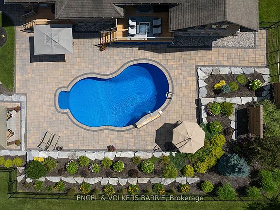 5,000 square feet of living space full of natural bright light, an estate lot of over one acre and a landscaped yard complete with a pool, multiple decks, ample patio areas for entertaining and beautiful gardens. A gorgeous entryway, full of natural light, welcomes you into the home with travertine tile and maple hardwood floors that flow effortlessly into the open-concept kitchen and living space. The high ceilings and large windows bring the gorgeous landscaping of the property indoors to create an inviting and calming atmosphere. The fully finished basement offers extra living space with two additional bedrooms and a jack-and-jill bathroom with heated floors, as well as a home office. A separate games area and theatre room provide abundant space for fun with family and friends. Located within close access of the 400 as well as a short drive into Barrie, this home is ideal for any recreation enthusiasts. You have immediate access to the OFSC Trail system and Horseshoe Valley Resort. 2023-10-12