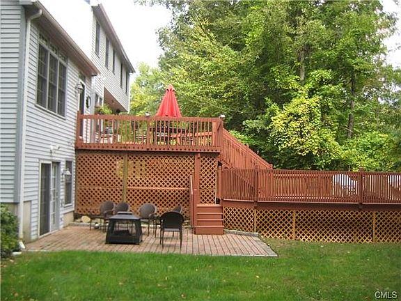 Custom Colonial offering unique floor plan. Living room and Dining room with hardwood floors and french doors to deck, Kitchen has granite, breakfast bar and eating area, Family room with vaulted ceiling, stone gas fireplace and second staircase, first floor office and laundry room, master suite has large sitting area with gas fireplace for ambiance not heat , jet tub and shower stall, walk-in closet, 3 additional bedrooms and full bath.Full basement with french door to patio, new garage doors, gererator hook-up, alarm system, public water, all set on 1.29 of a private acre.