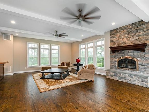 Geothermal Heating for this gorgeous slice of heaven! Literally 0 heating bills for this extensive 4BR 3.2 Bth Colonial sitting atop a gentle hill with sweeping front lawn at the end of a cul-de-sac. Home was added on to/updated in 2014.Feel the seamless flow upon entering the 2 story foyer and proceeding to the open DR and on to the LR with stone frplc and wall of French doors leading to the deck, yard & 18' x 44' heated in ground pool. Step up to the brkfst rm & gourmet chef's kit w/endless cabinets, granite. Beyond is the pantry, office, fr w/2nd stone frplc, mud rm w/dog washing area, & 3 car garage. The back stairs leads to a game rm & to the brs. Master has 2 WICs and a spa-like bth. There is a princess suite, 2 more brs, hall bth, lndry + 2 bonus rms on 2nd level. The LL boasts walk-out Media Rm, half bth. The grounds are beautifully manicured with in ground sprinklers & house generator fueled by inground propane tank. A fantastic home for entertaining. Conveniently located.