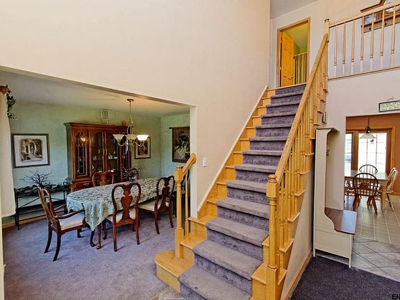 Spacious 4 bedroom home with 2.5 bath. Open concept great room from Kitchen to Living Room. High ceiling in foyerFinished Area in the basement for recreation and entertainment. Carpet and Ceramic throughout. Master bed has en suite and double doors. His and Her sinks in Master bath. 2 car garage on wide driveway. Above ground swimming pool and cement patio. Fireplace. Recessed lighting and modern light fixtures throughout. East Greenbush Schools and Bell Top Elementary.
