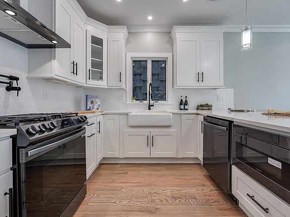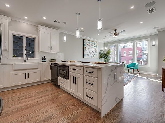Reputed builders, NKay Construction, do it again with these freshly renovated, modern, move-in ready homes in The Heights. Set on a beautiful tree-lined street, each spacious three bedroom layout comes with coveted private outdoor and EV charger non-tandem parking. Stylish finishes and top-level craftsmanship shine with classic crown molding, rich hardwood floors and large Pella windows. Eat-in kitchens showcase sparkling waterfall quartz counters, farm sink, shaker cabinets, blue accent shiplap, and black Samsung appliances including pot filler and added wine fridge. Smarthome features include ring doorbell, camera and security system, and nest thermostat. Upstairs units includes full-size private rooftop with incredible cityscape views. Bathrooms boast extras like beautiful blue double vanity, herringbone tile, glass shower with multi-spray system, matte black fixtures and smart mirrors. All units have a dedicated utility area with Samsung washer and dryer, plus tandem EV charging garage tandem parking. Newly refinished tan brick and grey paneled building is situated less than one block from Summit Ave, and equidistant to both Washington and Pershing Field Parks. Jersey City Heights is known for its great community, excellent schools and easy NYC access, with vibrant shops, restaurants and parks!