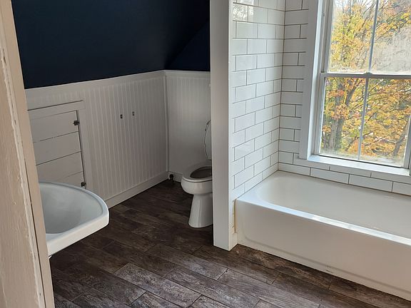 Freshly painted, updated historic duplex/townhouse in downtown Peterborough. Top unit has street level entry with a flexible, open floor plan and two floors. River views, hardwood floors, modern kitchen and baths. Laundry facilities. Off-street parking for no more than 2 cars. Light filled. No cats. One dog potentially negotiable. Very easy highway access and walking distance to Peterborough shopping, restaurants and park. Landlord pays for water, sewer and weekly trash pickup; Heat and electric are tenant's responsibility. Cars are limited to a non negotiable maximum of two. Landlord does not supply a washer or dryer, only hookups. Dishwasher is not warranted and may/may not be repaired or replaced and landlord's discretion. Hot water heater, wall heaters, stove and refrigerator are warranted, but tenant is expected to maintain appliance cleanliness and keep them in good working order. Winter outdoor walkway, stair and parking space maintenance (e.g. snow shoveling and de-icing) are shared responsibility of tenants. Landlord will provide snow removal if necessary. No smoking allowed inside unit, or outside should it become a nuisance in any way. Consideration for neighbors is expected with respect to noise, parking, etc. Pets are discouraged but may be negotiated at landlord discretion, with the exception of cats, which are not allowed. See lease for additional terms and conditions - a review copy can be provided upon request after apartment viewing/tour. Monthly rent is extremely competitive for the area and takes location/curb appeal into consideration.