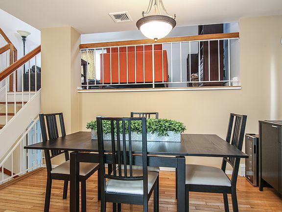 Pristine two-bedroom end unit in sought-after Arbors community. Entry foyer opens to dining room and recently renovated eat-in kitchen. Steps down from foyer to a large bedroom/den featuring a recently updated full bath, walk-in closet and sliding door to private patio and fenced-in yard. Second floor consists of a large sun-filled living room with brick fireplace and cathedral ceiling and overlooks dining room and kitchen. Stairs up from living room to master bedroom with updated bath and laundry. Updated kitchen and baths, hardwood floors, recently painted interior rooms, ample closet space and spacious rooms. The Arbors development offers a private country club lifestyle with clubhouse, pool, tennis/paddle courts, playground and health center.