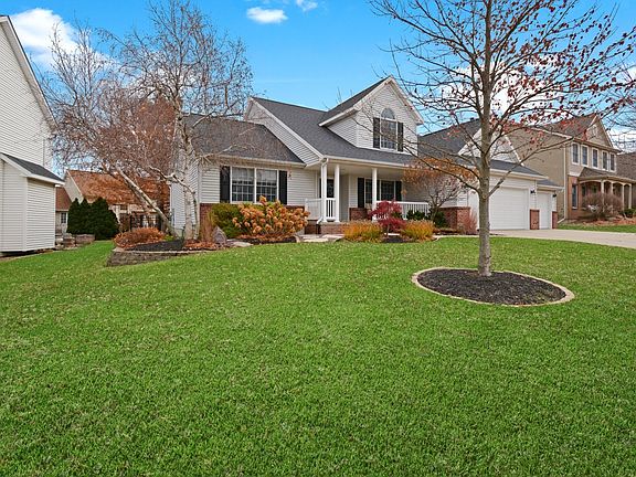 Beautiful Kaisner built 1 1/2 Story home. First floor owner's suite. Open floor plan with 2 story ceilings in family room. Sunroom off of kitchen. Lovely hardwood floors off entry, hall and kitchen. 3 bedrooms up with a great loft. Huge family room and bonus room down. Fenced yard, professionally landscaped with patio.