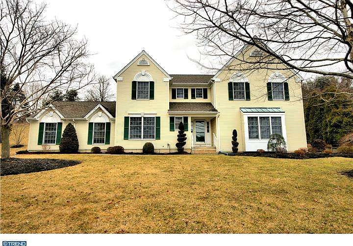 Beautifully maintained and updated center hall colonial in the Sandlewood Development in Robbinsville Township. This home has 4 spacious bedrooms and 2.5 baths. A large, 2 story foyer welcomes you into the home. The large living room, dining room and family room all have hardwood floors. In the kitchen you will find updated tile flooring, appliances and light fixtures. An updated powder room off of the foyer completes the 1st floor. The master bedroom has two walk in closets, bamboo flooring and a fully renovated master bathroom. The master bath has 2 sinks with granite counter, tile shower stall and soaking tub. The bamboo flooring continues into the hallway and into one of the other bedrooms. Two other bedrooms have updated carpeting, and these 3 bedrooms share the hall bathroom. Youll enjoy the convenience of the 2nd floor laundry. A full basement is ready to be finished. In the back yard is a deck for entertaining your guests, and the park-like yard is very private. Other features of this home include recessed lights and a gas fireplace in the family room, a home security system and a lawn sprinkler system in the front yard. The roof is newer and the furnace and central air conditioner are less than 1 year old. This home is neat and clean and move-in ready. Make an appointment to tour it today.