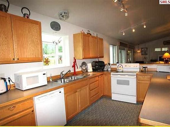 Single level 2100 sf home, 3-car insulated garage with community water access, panoramic mountain views and on almost an acre (plenty of room for a shop). Featuring 3 bedrooms, 2 bathrooms, sunroom, spacious living room with office area and a cozy stove. Forced air gas heat. Enjoy this convenient location with a bike trail & paved access to Sandpoint. The lake access has lawn to the water's edge with a sandy beach, bring your boat and enjoy!
