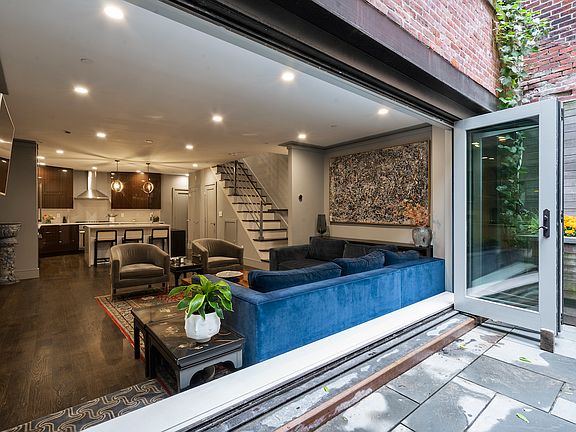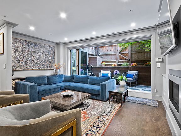 A pristine 2 bedroom/2-1/2 bath duplex on a beautiful tree-lined street in the desirable South End. Enter into a foyer, the staircase brings you to a wide open living/dining/kitchen with a wall of glass that fully opens to a lovely private patio and garden. The living area features a gas fireplace and plenty of room for a large dining table. Gleaming center-island gas kitchen features gorgeous white soapstone counters, breakfast bar, extra large contemporary cabinets and Thermador stainless steel appliances including a wine fridge. Convenient half-bath adjacent. The upper level features two spacious bedrooms and generous storage. In the rear is a sumptuous primary suite with a fully built-out walk-in closet and en suite bath offering a double vanity, soaking tub, and separate walk-in shower. In front you'll find a bow front second bedroom also with a modern en suite bath. A wonderful home just steps from boutiques, gourmet restaurants, and everything that the neighborhood offers.
