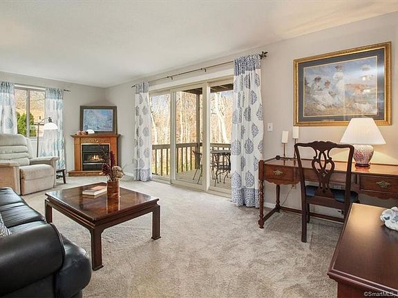 Move right in to this first floor spacious 1082 square foot unit located at the quiet end of Happy Hollow Circle backing up to the woods. Living room has a corner fireplace with sliders that open onto a large deck with great views of the woods. Nice size dining room. Master bedroom has a walk in closet. A large den that could be used as an office or guest room. Parking at the front door makes this easy access. Great storage in the unfinished basement. Side-by-side washer dryer on main floor. Enjoy the pool, club house and well managed community living where you can enjoy a long walk. Rare to find FHA approved complex. Easy access to Rt 8. Enjoy being close to all kinds of shopping, groceries, great restaurants, banks along Bridgeport Avenue. As-Is Sale