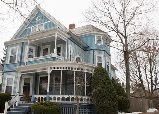 One of Northampton's loveliest homes. 35 Harrison was built at the height of Northampton's 19th century prosperity on one of its most prestigious, tree-lined streets in the Smith College neighborhood, walking distance to downtown. The craftsmanship of its parquet floors, rare wood paneling and pocket doors, stained glass windows and elaborate mantels has few parallels in the area. Wonderful turn-of-the-century curved front porch. The 1st floor features a gracious front parlor with fireplace connecting to a bay-windowed sitting room with built-in bookshelves and a formal dining room with wainscoting. In the rear, a generous kitchen with new granite countertops and cabinets connects to a laundry room and full bath and new mud room. The 2nd floor features a front balcony, 3 bedrooms and updated bath & top floor has 3 more secluded & airy office/bedrooms. 3556 sq. ft. of living space and many updates including electrical,heating,a/c on 1st floor. 2-car garage & fenced in backyard.