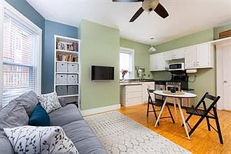 Brookline Village! This 2 bedroom, 1 bathroom unit is just two blocks from the Brookline T station "D" line, and minutes to Route 9, Longwood Medical area, and Coolidge Corner. Quiet unit in a 6 unit complex tucked away behind the restaurants, shops, and coffeehouses that make this location such an enjoyable place to live. This second-floor condominium in a professionally-managed building has wood floors, replacement windows, an open eat-in-kitchen/living room area with updated stainless steel appliances, on-site laundry, and storage in the basement. The stainless steel appliances were purchased in the past 3 years and include the gas range, refrigerator, and portable dishwasher. Washer/dryer in the building. Heat hot water, water and landscaping all included in the rent. 12Months