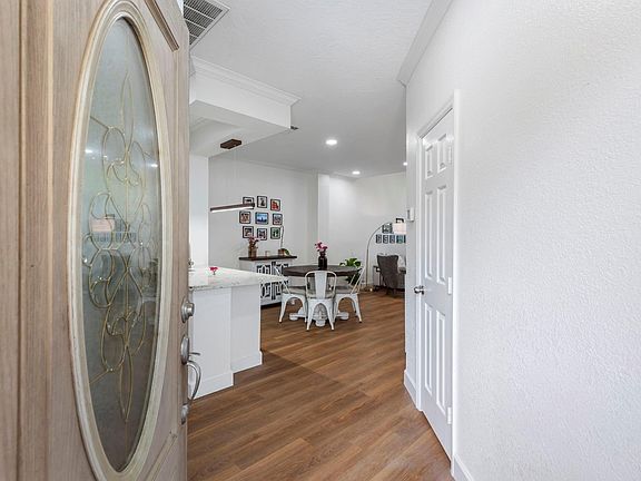 This beautifully updated, bright and open 2-story townhome offers 3 spacious bedrooms, a versatile game room, an additional flex/bonus room & a 2 car attached garage. The updated kitchen features Quartz countertops, glass tile backsplash and recent appliances, while the refreshed half bath adds modern convenience. The primary suite is located on the first floor with 2 separate closets and an updated luxurious bathroom with Quartz countertops, a soaking tub, a separate shower, and dual sinks. Enjoy a low-maintenance backyard with a custom brick patio and outdoor modern lighting. Front yard maintenance covered by the HOA. Huge attic space built out for additional storage inside the closet doors in the bedroom upstairs! Refrigerator, washer & dryer included. The garage has lots of shelving, overhead storage & a utility sink. Conveniently located near Buckalew Elementary, Lakeside Park, and Alden Bridge Village Center. Make this one yours today!