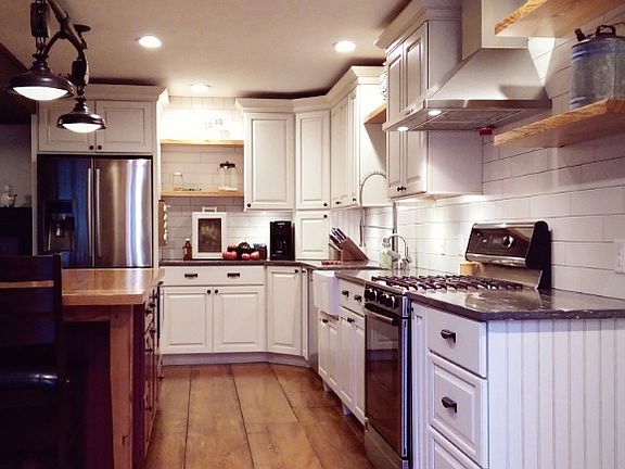 Meredith, NH 4 Bedroom, 4 Bath antique cape home on 32+ acres, hunt, hike & snowmobile right in your own backyard. Just minutes from downtown this beautifully restored 1790's center chimney cape with 3600+ sq. ft. features open concept living at its best with exposed beams, cathedral ceilings and wide plank wood floors. The newly appointed eat in kitchen features stainless steel appliances, granite counter tops, and large center island. Open to the spacious living room and formal dining space perfect for entertaining friends and family. The first floor master bedroom suite features a large closet, tiled jet tub, and shower. There is an additional bedroom and bathroom on the second floor. The lower level with lots of natural light features a family room, one bedroom, full bath and laundry room. Enjoy this breathtaking property from the screened in porch, overlooking the spacious partially fenced in yard, & mature gardens. You will love having a separate 2 car garage for all your cars, tools & toys. This property is situated perfectly to enjoy access to the 500+ acre reserve in your backyard for hiking, and snowmobiling. Very close to Lake Winnipesaukee, Gunstock Ski Mt and easy access to I93.