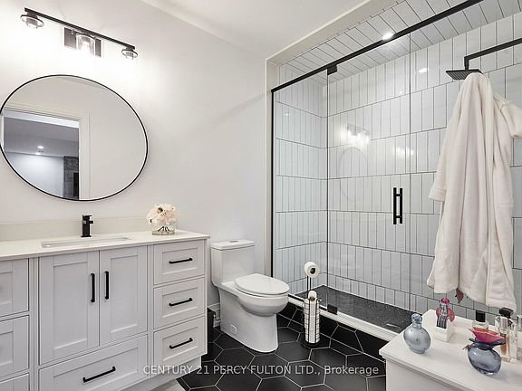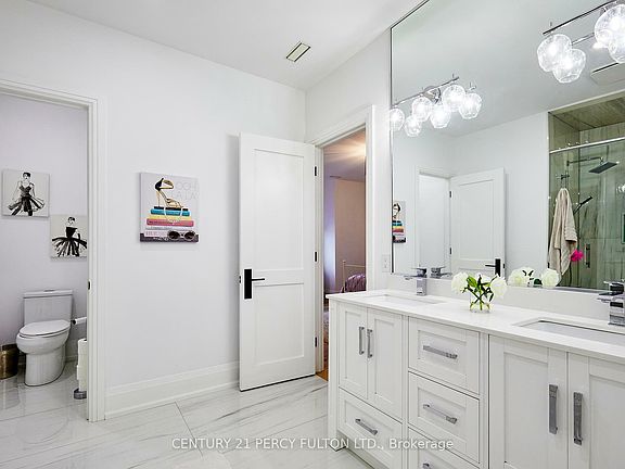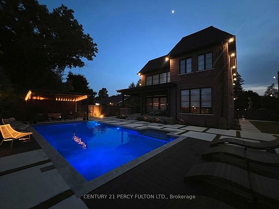 With summer just around the corner, picture yourself in this beautiful backyard oasis! In the heart of Brooklin Village, this beautifully crafted, 2-year-old home spans 4750 square feet (excluding the basement) and features a custom arched front door. The open-concept main floor boasts 10-foot ceilings, white oak flooring, and a chef's kitchen with a 10-foot island and custom hood fan, perfect for entertaining. Highlights include a double butler's pantry, a dining room with an accent wall, and a living room with a 20-foot open-to-above ceiling and full-wall concrete fireplace. An open riser staircase with glass railings and a skylight enhances the modern design, while an elegant wine wall adds a touch of luxury. The upper level features a primary suite and a spa-like ensuite bathroom with comfort-height vanities, heated floors and marble accents, along with three additional bedrooms with custom built-ins and heated floors in the bathrooms. The backyard is an entertainer's paradise, showcasing a 34x16 ft saltwater pool with a waterfall and cabana, two grills for al fresco dining, a gas fire pit, and pool lighting for evening ambiance. It also includes a separate entrance to the house from the backyard for easy access. The 1700 square foot finished basement includes a gym and a guest bedroom. Additional amenities include dual thermostats, solid wood doors, heated floors in the mudroom, large black interior/exterior windows and a 2.5 car tandem-style garage. Situated in the heart of the village, this residence seamlessly combines luxury, convenience, and comfort! **EXTRAS** 2 and a half car garage (tandem style), black interior and exterior windows, gas firepit