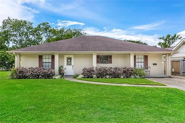 Secluded enclave in River Ridge and a rare find as property abuts levee with gate access. Huge backyard oasis with covered patio that leads to den and master bedroom. Open floor plan with den with cathedral ceilings opening to dining and kitchen with island. 300 sq. ft master bedroom with 2 closets and master bath with oversized marble tub. 4' X 48' front porch, 10' X 20' shed, X flood zone.Ready for new owner to move in!