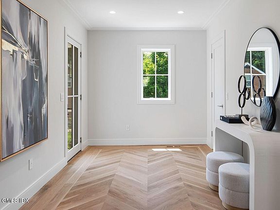 35 Herman is a newly built home by luxury builder Casa Tua. 6 br 4.2 bath, and 5k+sq ft. The first floor features a modern custom-built white oak kitchen with Viking appliances, a 48-inch refrigerator and range oven, a waterfall quartz 10ft island and backsplash. Open concept living offers dining room and family room with slider access to side yard and stone patio in the serene and private backyard. A great room with a stunning 60-inch fireplace and a gorgeous powder room complete the sun-drenched first level. The second floor features the soundproof primary with 18ft cathedral ceilings, custom-built his and hers closet and a spa bath with heated flooring, large steam shower, smart toilet, and stylish soaking tub. 3 additional br, 2 bath and laundry room with plenty of closets completes the second floor. The third floor has an additional 2 br, and a full bath. The lower level has a 2-car garage, (EV ready), a spacious mudroom with built-ins, a play area/gym and a half bath. Wide white oak flooring throughout, 5 zones, Marvin windows and doors, shiplap pvc siding and battens design, and interior ultra-chic finishes that blend effortlessly. Move in to enjoy Darien's award-winning schools, restaurants, shops, stunning beaches and Great Island!
