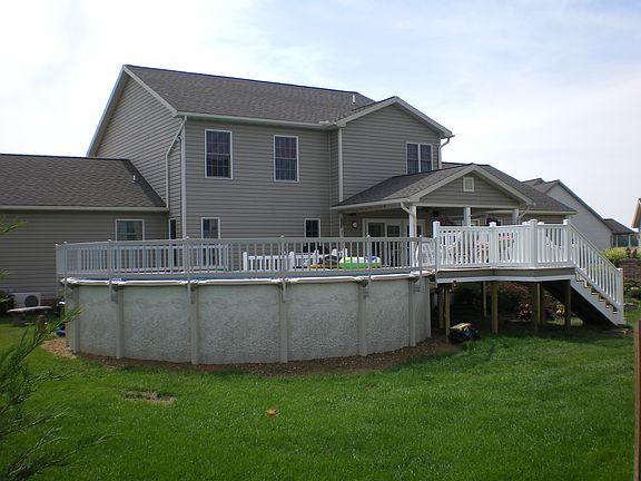 Stunning 4 Bedroom, 3 full baths Colonial with tons of upgrades! Former model featuring custom kitchen, crown molding, Intercom & Speaker System, Trex decking & beautiful patio with Pool & Hot Tub. Master or in-law suite on first floor, plus another master on 2nd level. Oversized 2 car garage plus detached 1 car garage. Full, unfinished, walk out basement.