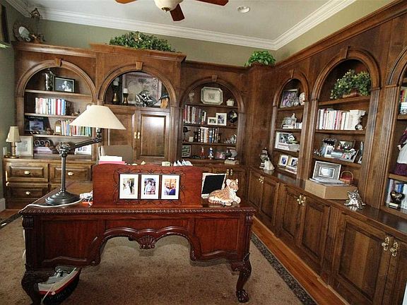 35 HIDDEN FALLS! As elegant an image as portrayed by the front of this beautiful 4200 SF home. The interior is even more stunning by comparison. As you step into the foyer, you are greeted by an artistic staircase ascending and turning through the 10' ceiling to the second floor topped by a beautiful chandelier. To the right of the foyer pass through the arched double entry into the formal dining room featuring a handmade crystal chandelier; or turn to the left beneath the twin arch into the paneled study. The gourmet kitchen is a chef's paradise. Every amenity and touch imaginable including granite, Thermador gas range, backed by a custom frieze. Panel refrigerator, dishwasher and custom cabinets galore. The breakfast area is huge behind a bay window topped by yet another chandelier. The living area is open and faces a fireplace wall with activity cabinetry surrounding it. The lovely hardwood stands out here and continues throughout the entire house.