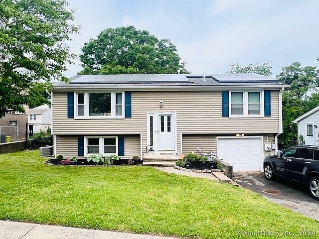 Updated and ready to move in: Raised Ranch located in the St. Ann's Park neighborhood of Hamden; in close proximity to Southern Connecticut State University and West Rocks, New Haven. This home is brought to today's standards of an open living concept. Curb appeal is apparent, and you will notice the beautiful beds and retaining wall. The living room has a bay window providing an abundance of natural light that shows off the hardwood floors and fireplace. The kitchen is fully applianced with a large island offering seating and a pantry. The kitchen has direct access to your deck which overlooks a fully fenced yard and shed. There are 3 large bedrooms and 1.5 baths. The home features central air, an efficient solar panel system and a spacious family room that's completely tiled. There is a spacious attached 1 car garage with interior access and backyard.