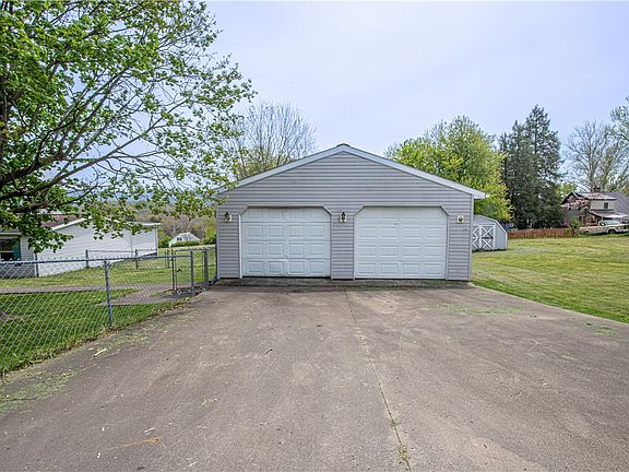 Bedroom with 2 full bathrooms, including a master bath. Mobile home with no basement. Fenced in yard and a 2 car garage and shed for storage. Very nice usable yard!