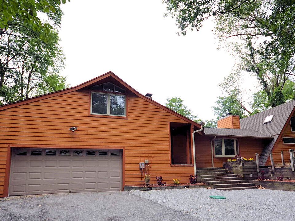 LAKE VIEWS: Short walk to Lake Michigan, South Shore trains, parks, trails, & tennis courts from your hilltop 4-bedroom cape cod with basement on 2 wooded, landscaped lots in Ogden Dunes. 2 fireplaces, 2-car garage.