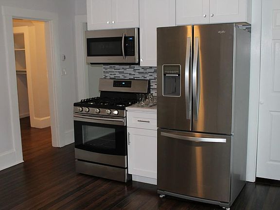Two-bed, one-bath rental featuring spacious entranceway opening to large living room with bay window, a bright kitchen and bath renovated to condo quality, central air, high ceilings, beautiful dark stained fir floors, and an oversized bedroom with built-in closet organizer. Big eat-in kitchen with stainless appliances, crisp white quartz countertops and ample cabinet/ pantry space. Porch off the kitchen is exclusive to the unit. Lovely shared backyard. Private laundry on-site. Access to designated storage area in basement. Abundant street parking. Easy access to restaurants, coffee shops, grocery, commuter rail/ public transportation hub and other conveniences in Roslindale Village. Plus Roche Brothers Grocery, cafes, shops on Centre Street in West Roxbury a short distance away. There is a fee to tenant equal to one month's rent for this property.