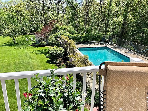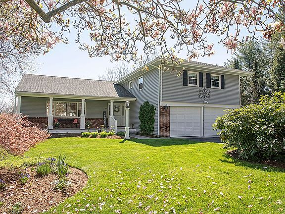 Many levels of HIGHLY useful space in this beautifully maintained, 4 bed home designed with 1st floor private in-law or office potential. Over an acre of impeccably manicured grounds and perennial gardens, it is a showplace for summer entertaining with an inground pool, sprawling lawn and oversized deck off its newly renovated, granite kitchen. Over 3,100 sq ft of move-in-ready living space boasting central air, updated baths, separate dining area, fireplaced living room, charming den, winterized sunroom, hardwoods, finished basement, and ample storage / closet space. Vinyl siding, replacement windows, new oil & hot water tanks, and 6 yr old roof. Great curb appeal with stunning Azek front porch & stone entryway - this home welcomes you in for a comfortable stay including 2 car garage and driveway parking for 4 with ample turning space.