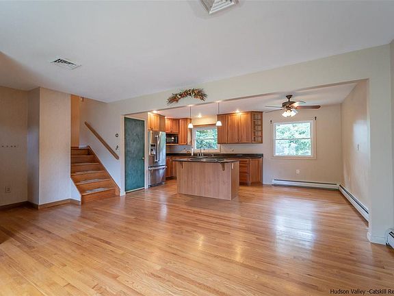 Neat as a pin Split Level in Lovely Uptown Kingston location with mature Landscaping and Low Traffic. You'll enjoy the Open Kitchen, Dining and Living Area with Hardwood Floors and plenty of Natural Light. The Renovated Kitchen boasts Granite Counters over and under Mission Style Cabinets and a Large Island with Stainless Steel Slide-In Range. A few steps up you'll find 3 Bedrooms (again with Hardwood Floors) and a Renovated Full Bath with Neutral and Tasteful Ceramic Tile. A few steps down from the Living Area leads you to another finished Room which could be used for your Office or maybe a Hobby Room, a Half Bath, the Drive Under Garage and a door leading to the Rear Deck. As a Bonus there's a Full Basement under the Living Area housing the Utilities, Freezer and great for storage. Speaking of Utilities this Home has Central Air Conditioning (+/-4 yrs young), HW Baseboard Heat with a brand new Oil Tank, Solar Panels assisting payment of your Electric Bill (the Solar Panels are Owned, NOT Leased!), a Whole House (Generac) Generator and Whole House Surge Suppressor. The Vinyl Siding is +/-5 yrs young. The Owners have lovingly cared for their Home for the last 30+ years and now it's your turn to make this Your Forever Home!