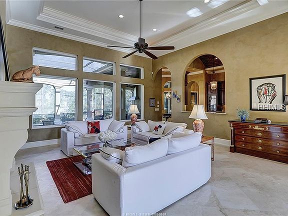 Located on one of the prettiest streets in Berkeley Hall,sits this magnificent Tuscan inspired home.From the majestic iron double door entryway to the mesmerizing marsh view from your private pool/spa & outdoor kitchen & bath oasis,you know this home is really special!Built with incredible attention to detail by a local award winning builder - this home features stone columns,stone fireplace & mantel,custom ceiling treatments including a brick barrel ceiling in the oversize gourmet kitchen.Cherry cabinetry,rare granite & extensive upgrades are evident throughout. .75 acre homesite enhances the incredible curb appeal of this spectacular home!