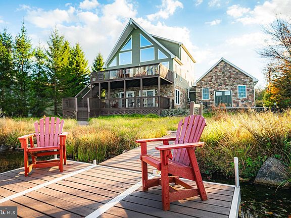 Discover this exquisite custom-built lakefront residence, a harmonious blend of stone and vinyl, spanning three stories. Nestled on a serene street, this property boasts nearly three-quarters of an acre for your enjoyment. Wake up to the mesmerizing sunrise on one of the most coveted lakefront lots in Towamensing. 3-4 bedrooms and 3.5 bathrooms, this home offers abundant space for your comfort and relaxation. Meticulously designed, it features not one, but two stone fireplaces, two convenient laundry rooms, and dual master bedrooms .The chef-inspired kitchen is an epicurean's delight, featuring granite countertops, handcrafted maple cabinetry, a generously sized island. On the second level, you'll find hardwood flooring.The expansive windows in the DR & LR frame breathtaking vistas of the lake, allowing you to immerse yourself in the natural beauty of the surroundings. LL featuring a grand family/game room, complete with a cozy fireplace and an impressive 16-foot bar and kitchen area, perfect for hosting guests. Step out onto the upper and lower decks to entertain or simply soak in the unparalleled beauty of the lake. A convenient walkway leads to a private dock, offering an idyllic spot for fishing and swimming. This home is genuinely one-of-a-kind and a pleasure to showcase. Whether you seek a full-time residence, a vacation sanctuary, or a lucrative rental property, opportunities are limitless. Don't let this chance slip away to own this extraordinary lakeside retreat.