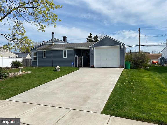 Single ranch in Levittown. New cement 4 car driveway, detached garage with covered walkway to house . Newer siding , gated fenced yard . 2 storage sheds . Modern galley kitchen with ceramic tile flooring , Corian counter , white cabinets , electric range , dishwasher, tiled back splash , recessed lighting . Formal dining room with newer carpets , ceiling fan, laundry closet . Formal living room with ceiling fan , side door to side yard , carpets, wall ac unit , lots of natural light from windows .Modern newer hall bath with marble floor and bath walls. Hall linen closet . Primary bedroom with carpets , ceiling fan , wall closet , newer modern master bathroom with ceramic tiled floors and walls . 2nd bedroom with carpets , ceiling fan , closet . 3rd bedroom used as office with ceiling fan ,and carpets . Attic storage . Great fenced yard with plenty of space for entertaining . Come tour this house today , will not last in this market .
