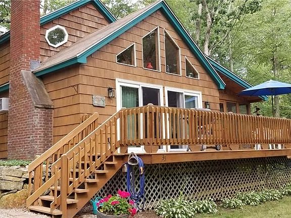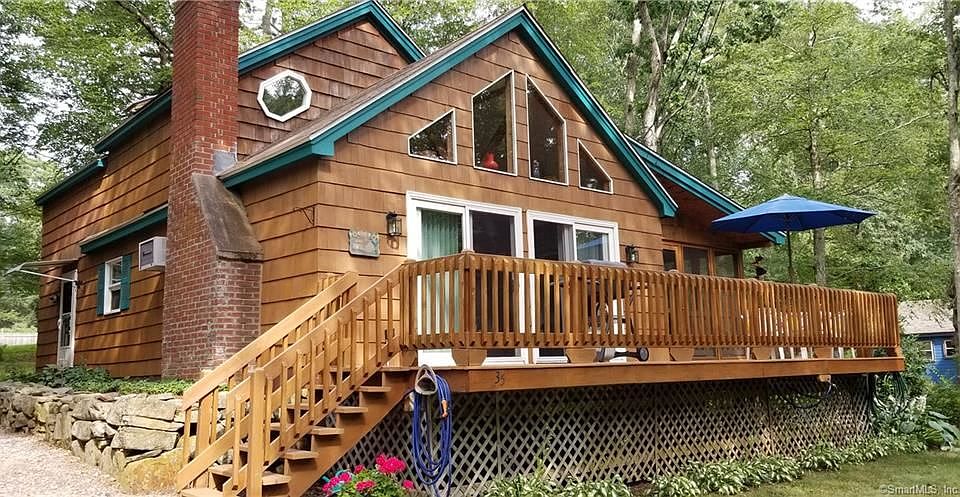 Come see this gorgeous year-round contemporary home full of natural light on beautiful Amston Lake! Best part is its location is just steps to Lollipop Beach! Instantly you will fall in love with this lovely spacious home with huge atrium windows and open beamed ceilings! Master bedroom on main floor with outside egress. Second bedroom is a great place for kids with the fun loft area and open beamed ceilings! Kitchen has unique wood washed ceiling. Everywhere you go in this home is a delight! Relax in the additional outdoor space in the screened-in side porch could easily be converted to 3-season! Home was recently converted to year-round use and has all the town approvals! Many newer updates with insulated windows and doors. Oversize lake lot and neatly landscaped yard. Huge shed. Water and Sewer Connected. There is nothing to do but bring your bathing suit, fishing pole, and boat! Time to enjoy one of Connecticuts cleanest lakes!