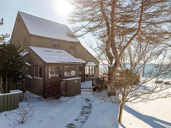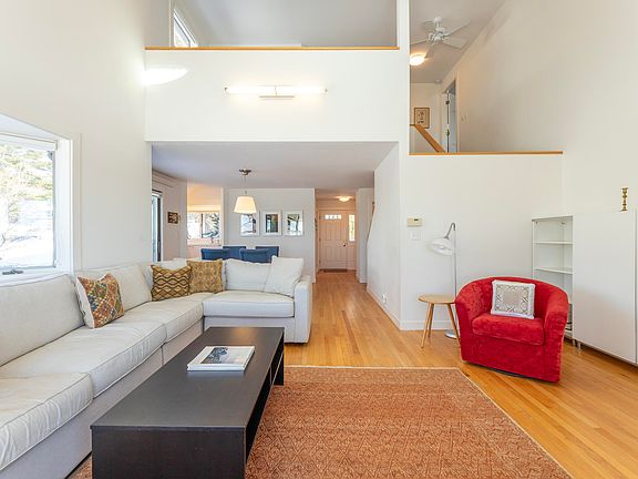 Light-filled end/corner unit, in a choice location close to the dock, with generous views of Rockland Harbor. This unit's layout provides for first floor living with a master bed and bath, large outdoor deck space, laundry, powder room and fireplace. Upstairs you will find 2 bedrooms, a full bath, and a loft area great for an office or sitting area. Automatic standby generator installed, Rinnai heating unit, and detached 2 car garage with storage.