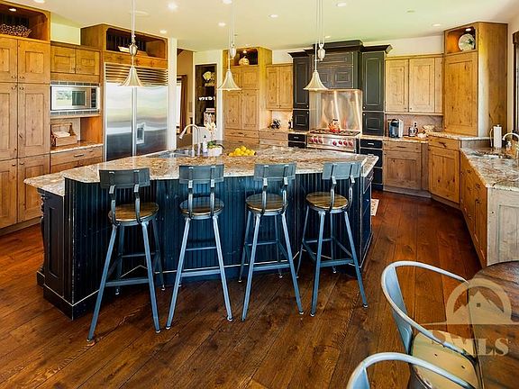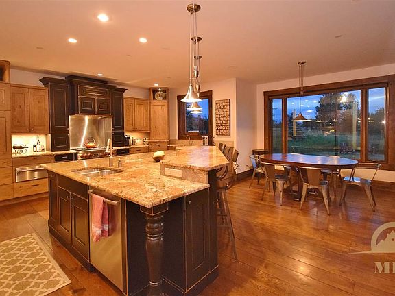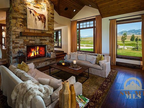 One-of-a-kind setting surrounded by open space & stunning views. This rustic yet refined home offers a stone patio w/ outdoor fireplace, full surround sound, security system, heated driveway, oversized 3-car garage, underground dog fence, in-floor radiant heat PLUS AC. Kitchen is a chef's dream w/ Pro appliances, large island & eat-in area. Main floor master suite is pure heaven w marble tiled steam shower, private hot tub. Miles of trails, minutes to charming Downtown, the Bozeman Beach, golf & fishing.