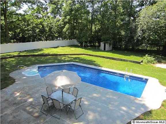 Spacious bi-level w/ 4 bedrms, 2 full baths & 2 car garage. Featuring gorgeous hardwd flrs on upstairs level, open layout w/ formal living & dining rm, huge eat-in kitchen w/ skylights which opens to deck & staircase that leads to large fenced backyard w/ built-in pool. Downstairs has huge family rm w/ fireplace that opens up to sunroom. This is one of the largest bi-levels you'll see and has mother/daughter possibilities. Near Hwy 35&36, rt 18, Parkway, beach, train & Monmouth Mall. Brokered And Advertised By: RE/MAX Elite Listing Agent: Amy Peak Jengo