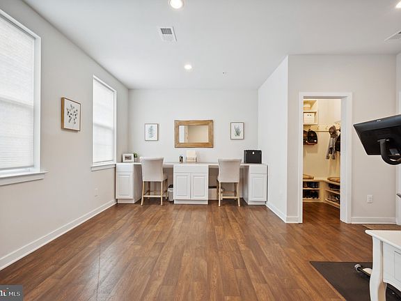 This property will not disappoint, gorgeous, contemporary townhome with 3 bedrooms, 2 1/2 baths & bonus room. On the entry level of this lovely home you will find a foyer with hardwood floors, a walk in closet with custom Shelves , a bonus room/ office with built in desk top, and access to the 2 car garage. On the Main floor you will marvel at the modern, open floor plan with beautiful hardwood floors throughout, a large living room and recessed lighting., dining area and a state-of-the art kitchen with a large island and seating, custom granite countertops, and stainless steel appliances. the Kitchen also has a spacious eat-in area and sliding glass doors to a composite deck, which is perfect for relaxing and entertaining guest. On the upper level you will find a very spacious primary bedroom with crown molding, ceiling fan & walk-in closet; bath with double vanity sink and large stall shower; hall bath with vanity sink and tub/shower; 2 additional bedrooms; linen closet and a laundry area( washer and dryer included). The monthly association fee covers the exterior building maintenance including siding, roof, gutters and downspouts; trash, water and sewer, lawn maintenance and snow removal. The Community has a well maintained common area courtyard, dog park, and walking trails, it is a convenient location close to shopping and restaurants. You are in walking distance to the train and so much more. This townhome will not last long on the market, so make your appointment to see it today !!!!