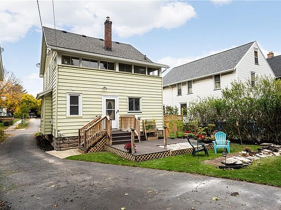 THIS IS A GEM! Stunning North Winton Village/Browncroft location totally updated and move in ready! Enjoy the amazing 3 season porch off the front of the home with wood ceiling and hardwood floor, enter into nice sized foyer with large closet, gumwood trim and French doors throughout this beauty and hardwood floors showcase the character. The updated chefs kitchen with custom island that is included, and large dining room with wall of windows make this a great entertainers home. Additional storage/pantry area off the kitchen is a great bonus! The backyard offers outdoor living space on the custom deck and firepit area to enjoy the seasons. The upper levels offer 2 large bedrooms, cozy back porch, and partially finished 3rd floor for office space or additional storage. Another added feature is the two car detached garage! This is a fantastic home! Will not last, delayed negations until Sat, 10/24 at 6pm.