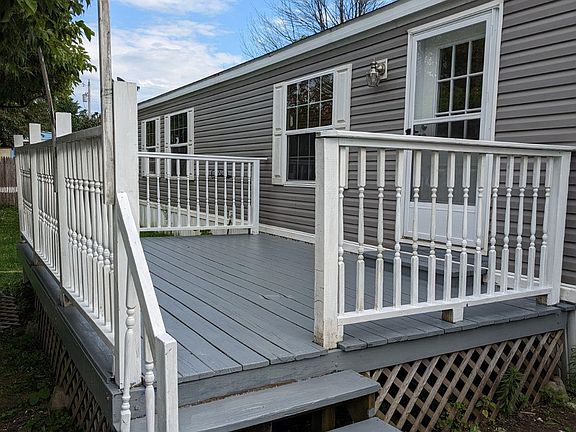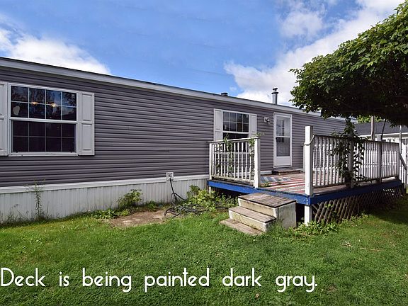 Beautiful very well maintained and recently upgraded home in nice neighborhood. This 2008 mobile home has new flooring in the living room, some fresh paint, 2 year old refrigerator, brand new microwave, newer 12 x 8 shed, and the 15 x 10 deck was freshly painted today! Living room has vaulted ceiling with wood burning fireplace. Extra large kitchen offers dining area and island. Lots of closet space and master bath has corner soaking tub. Separate laundry room. Lot rent includes large grassy area for picnics and games. Public water and sewer plus trash removal are included in fee. Great location just 15 minutes to Burlington or St. Albans. Very close to grocery store, schools, and parks. Great value!