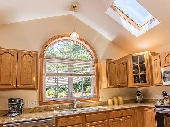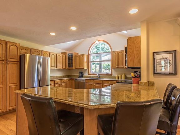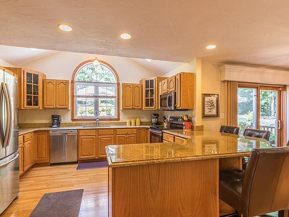 - Kit Dscrp: Main Level, Dining Area, Flooring - Hardwood, Countertops - Stone/Granite/Solid, Deck - Exterior, Skylight, Breakfast Bar / Nook, Stainless Steel Appliances, Open Floor Plan, Recessed Lighting, Exterior Access, Peninsula, Ceiling - Vaulted