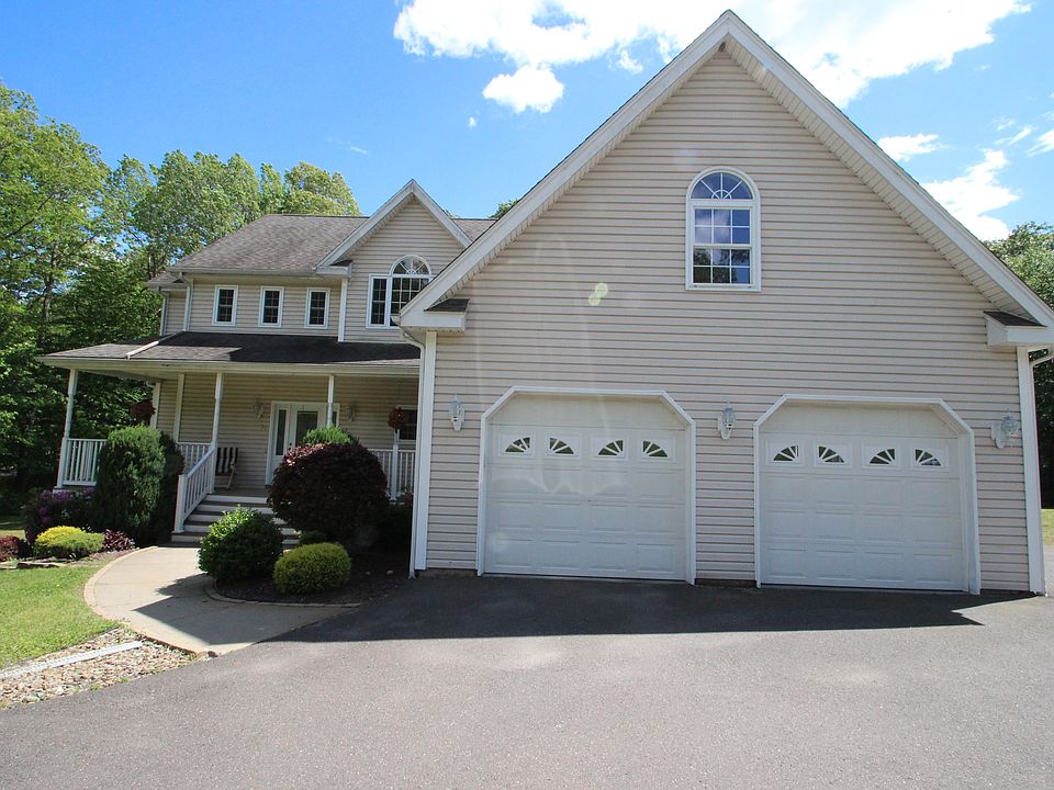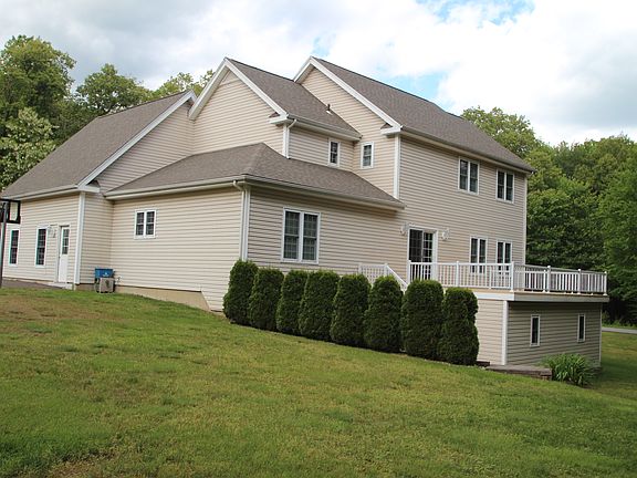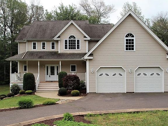 BE WELCOMED BY THE INVITING FRONT PORCH AND COUNTRY SETTING! This 4 Bedroom Colonial in pristine condition & Central Air, built in 2003 features wood floors 1st and second floor. Unique open floor plan with abundant architectural features that allows functionality and 100% usage of every room. Kitchen open to a semi-formal dining room overlooking a well designed great room with angled ceilings and impressive 2 story foyer , with access through sliders to a 23x16 large deck overlooking a private level backyard. Master bedroom is on the first floor offering tray ceilings, generous walk-in closet and huge sunny master bath with separate Jacuzzi tub and walk-in shower, tile floor and double vanity. 3 bedrooms and small office on second floor, one with walk-in closet. Separate walk-in closet off hallway for plenty of storage and access to an unfinished room with 624 sq.ft. for future expansion that includes a large window. The walk-out and finished lower level with approximate 800 sq.ft of living space is perfect for media room, rec room, or a playroom. additionally this home has a wrap-around porch, walk-in closet off mudroom area, paved driveway with surrounding stone walls and 23x16 workshop, and beautiful perennials for all year round enjoyment. Located in a picturesque country setting , walking distance to hiking areas and popular neighborhoods, just 5 minutes to center of town and exit 68, less than 15 minutes to Uconn. Home is on the paved area of Kendall Mountain.