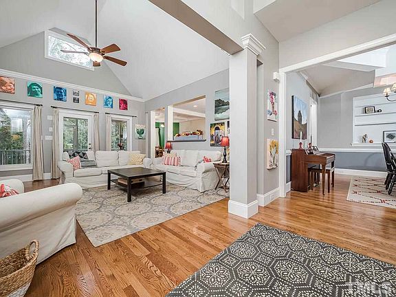 Beautiful 4 bed/4bath custom home in Youngsville! The 1st floor boasts a large master w/sitting rm, trey ceiling, moldings, large master bath w/jetted tub, shower, tiled floor.The family rm has soaring ceilings, built-ins, gas logs fireplace & h'wood floors. Large kitchen w/island, granite, h'woods, ss appliances. 3 more bedrooms, a full bath, a shared full bathroom, laundry rm. Upstairs is a large bonus with newer laminate flooring, + full bath & huge storage area. Large lot with screened porch & patio!