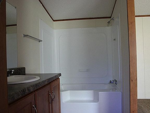 2009 2/2 Single-wide mobile home on 2 lots in Redskin Ridge. Living room has high ceiling, wood burning fireplace, & dark laminate flooring. Living room opens to kitchen with electric freestanding oven, dishwasher and refrigerator. Breakfast bar. Split floorplan. Master bedroom & master bath on one end of the house; secondary bedroom & hall bath on the other end. Both bathrooms have tub/shower combos. Neutral carpet, dark laminate flooring, & neutral paint make this home very attractive!