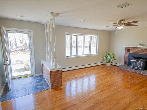 Spacious, move-in ready 3BR 2 Bath ranch in quiet country setting, yet close to food, gas and other amenities. So much to love with this home...fresh paint & refinished hardwood floors, wood stove insert in LR, Eat-In Kitchen and separate DR, tons of closet space throughout, newer roof and vinyl siding, wood deck that runs the length of the house, and all on a level corner lot with mature plantings.