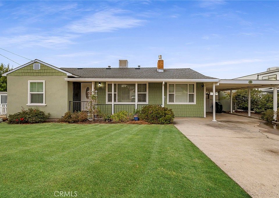 Looking for a captivating haven that could make your dreams of laid-back living come true? Ready for you to move in, unpack, and enjoy your ideal lifestyle, this delightful Oroville home is an opportunity you wouldn't want to miss! Originally built in 1951 on a desirable 0.22-acre lot, this inviting gem has been beautifully updated with modern touches across its 1,085-sq ft layout. Attractive siding extends from the covered front porch to the pergola-covered patio, lending to this home's remarkable curb appeal. Inside, immerse yourself in the welcoming ambiance created by tons of natural light spilling through double-pane windows. Crisp white tones lend a light, bright feel throughout, transforming the interior into a comfortable space you'll want to linger in. Greet guests in the living room with soft carpet underfoot, basking in the warmth of a brick-clad gas fireplace. Tastefully designed with easy-care laminate flooring and equipped for the avid cook, the kitchen highlights a suite of appliances, including a gas stove. Abundant cabinetry and over-sink shelving are available for storing your culinary gadgets, plus decorative molding adds character. Steps away, sliding glass doors leading outside allows you to easily transition from savoring appetizers together in the dining area to hosting memorable cookouts. Retire to the well-sized proportions of the 2 private retreats where soft sunlight wakes you up in the morning. Sure to please, the primary bedroom displays gleaming wood floors, an oversized walk-in closet, and a ceiling fan to keep you cool on warmer nights. In the 3-piece bath, chic tile surrounds you as you take a refreshing soak in the shower/tub combo. Lushly landscaped gardens and thick greenery exude a peaceful vibe as you unwind in the secluded backyard. Towering mature trees offer shade as you sip a cup of morning coffee. After a long day, this is also an excellent spot to enjoy your favorite beverage under the twinkling stars. For your convenience, the laundry room comes with washer & gas dryer hookups, a utility sink, plus a water heater. Other notable features include a storage shed and an attached single carport. There's also a multi-functional bonus room you can convert into an office, studio, or let your imagination run wild. Spend leisurely weekends exploring the lake, parks, mountain trails, & shopping options, or grab a bite at one of the many nearby restaurants. Come for a tour before this one’s gone for good!