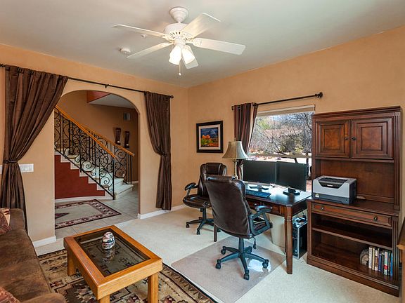 Escape to the serenity of Sedona and spectacular glory of the Red Rock views that illuminate 35 La Cuerda. Be embraced by the comforts of this upscale home. The spacious two-story makes entertaining a delight. An open floor-plan & grand chef's kitchen beckon guests to bask in the Arizona glow for relaxation and recreation. The viewing deck is the perfect setting for morning coffee, afternoon cocktails, or an evening under the stars. Energy efficient splits allow each room to be set to the occupant's individual temperature needs. The three car garage allows ample space for vehicles, storage, & outdoor toys. Speaking of fun in the sun, the Las Piedras community pool & party area is a short stroll away. Living in this home is like being on vacation year 'round. Come enjoy!