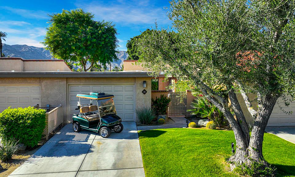 Experience resort-style living with this 'Turnkey Furnished' Granada plan at Sunrise Country Club. Close to the pool and Clubhouse, this thoughtfully designed home offers 2 bedrooms, 2 bathrooms, and a spacious open-concept living area--complete with your own personal golf cart for exploring the community or enjoying a round on the course.Enter through a private courtyard ideal for al fresco dining and relaxation, perfectly suited to Rancho Mirage's year-round sunshine.The updated kitchen features sleek quartz countertops and contemporary cabinetry -- combining style with everyday functionality.Sliding glass doors in both the living/dining area and primary suite open to the back patio, where sweeping golf course and mountain views create a serene backdrop.The second bedroom is privately situated and includes a sofa bed with a comfortable inflatable mattress plus a built-in workstation. Guests enjoy their own retreat with direct access to the front courtyard.Sunrise Country Club is a secure, guard-gated community offering: Par 64 golf course, championship tennis courts, pickleball courts, multiple pools and spas, newly renovated clubhouse with dining, lounge, pro shops, and fitness/activity center, and two brand-new Bocce Ball courtsNestled in the heart of Rancho Mirage, Sunrise Country Club is just minutes from premier shopping, dining, entertainment, and healthcare--making it one of the desert's most desirable addresses.