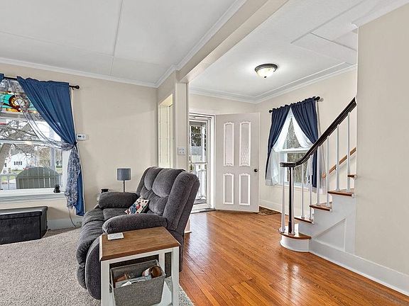 Beautiful home on over an acre of land in the city. On the 1st floor you will find your sun filled eat-in kitchen with plenty of storage, half bath, and formal dining room that leads into open living room and foyer. Upstairs you have 3 spacious bedrooms and your full bath. Outside is a covered front porch, open back deck, large yard with producing apple tree, a large garage/ barn and 4 bay carport - no more snow covered cars! The 2 story garage/barn offers countless options for use and lots of storage. Home has a lot to offer! 2022-02-25