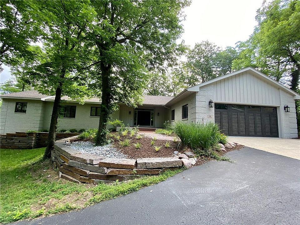 Beautiful RANCH home with lake views and lake access situated on a very quiet cul de sac in the LAKE POINTE neighborhood on Decatur's South Side. Cathedral ceilings greet you as you step inside the foyer down into the sunken Living Room with gas fireplace and large decorative window. The Kitchen done by Romano Co in 2014 features custom made cabinetry with paint over stain, granite countertops, coffee bar, pantry and tiled backsplash. A separate Breakfast Room is also included. Formal Dining Room. Gorgeous Den with a brick gas fireplace, built in cabinets that flows into an outside deck. Large Master Bedroom with a multi-tray ceiling and two walk-in closets. The Master Bathroom is sky lit, walk in shower, jetted tub and a beautiful vanity seating area. Take in the property on your 176 sq ft -4 season sun room. The finished lower level walks out onto a small patio and includes a rec room, a nice storage room, 2 extra bedrooms and a bathroom. Lake Decatur views from multiple spots in home. To add to this beautiful home you have 2 1/2 car attached Garage with an additional detached 2 1/2 car Garage that is heated, tiled floors and a windowed overhead door, which would be great for entertaining. The landscaping timbers and stone walls add to the beauty of this home and were just added in 2018. All decks include stylish cable deck railing. Almost 1.5 acres gives the home seclusion and the added benefit of wildlife gracing your paths. All appliances stay fridge washer dryer new in 2022. Relax in your own hot tub with a beautiful forest scenery. Property comes with lake access on lake decatur which a dock could be built on. Offering 3% buyer commission to agents.