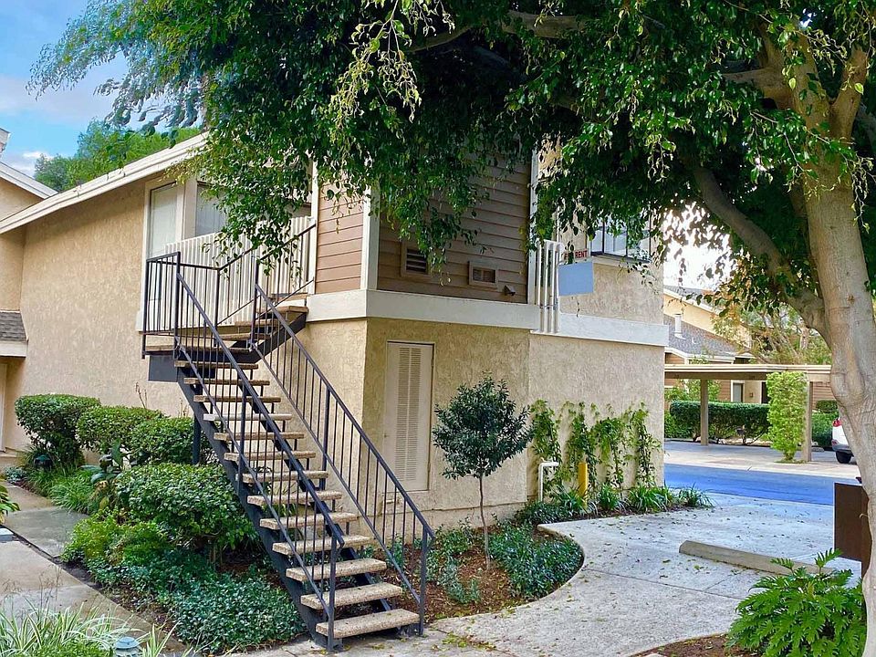 Live among the peaceful trees, lakes, and streams of the tranquil Lakes community. Remodeled and ready for immediate occupancy is this large one bedroom home plus den sitting on a tree-lined corner. This carriage home is a private end unit with no one above or below and features a large gated and secluded front patio, tall vaulted beamed ceilings, remodeled kitchen with quartz counters and stainless steel appliances, remodeled bathroom with double sinks, freshly painted designer two-tone paint, elegant wainscoting, crown molding, and coffered wall in the master bedroom suite. In-unit laundry hookups are available and refrigerator is included. The home is walking distance to award-winning schools. A short distance to shopping centers and freeway entrances. The community has two pools, two spas, two tennis courts and plenty of peaceful landscaped and waterfront walkways. Hicks Canyon bicycle and hiking trail is at the end of the street and Jeffrey trail is a short walk away. The property includes an assigned parking space and there is plenty of street parking or visitor spaces for a 2nd vehicle. You are going to love living here! CalRE#01345167 Owner pays water, garbage, sewer, and HOA dues.